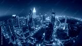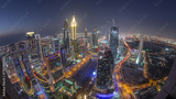 Skyline of the buildings of Sheikh Zayed Road and DIFC aerial day to night timelapse in Dubai, UAE.