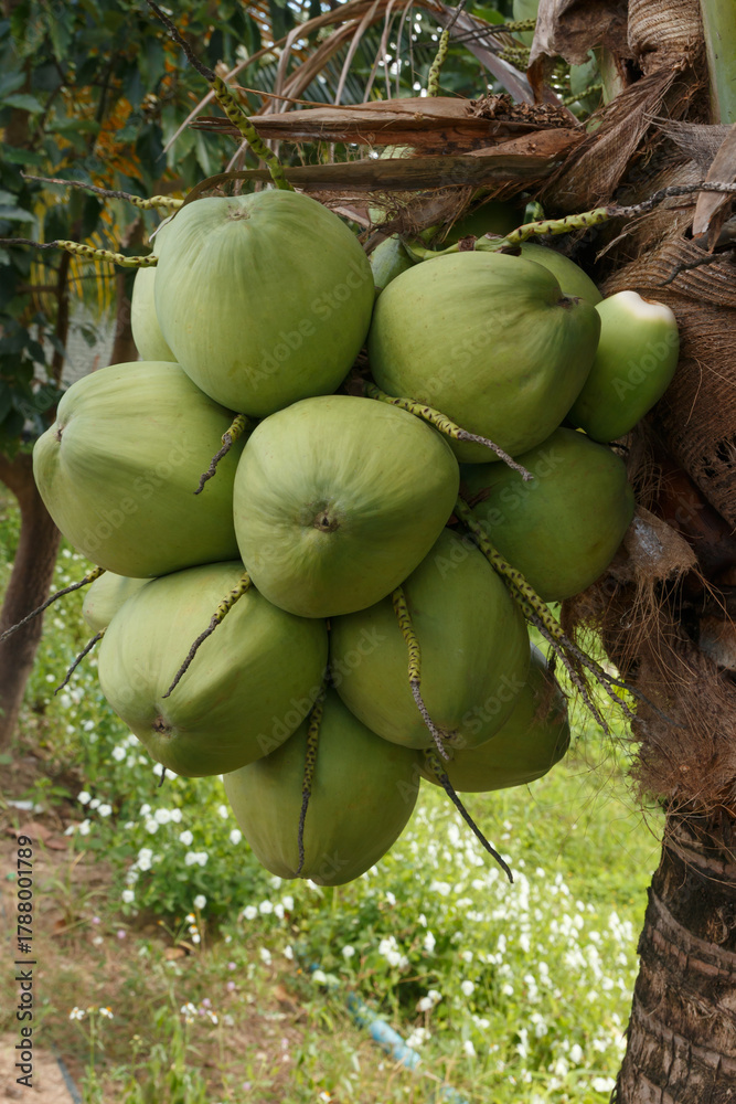 Coconut fruit on coconut tree in garden outdoor for nature background.