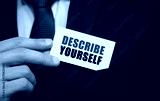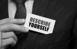 Businessman putting a card with text DESCRIBE YOURSELF in the pocket