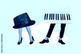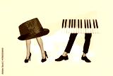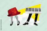 Full image pop contemporary photo collage of two anonym girl guy instead head piano keypad hat performance celebration concept