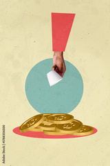 Creative vertical image artwork pop collage of hands show dollar banknote coin payment finance capital profit bonus bank transaction