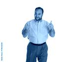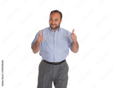 single Egyptian Arab thumbs up smart casual clothes, happy expression with toothy smile , isolated on white