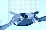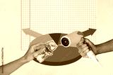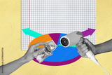 Pop zine full art photo collage of business hands point diagram icon arrow development pointer opportunity career growth chance