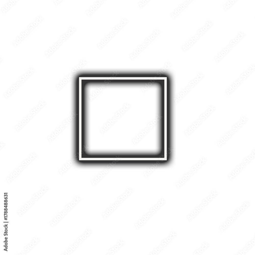 A simple white square outline glowing with neon light isolated on transparent background