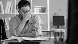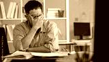 Businessman looking stressed from work, Businessman working at office feels overworked and burnout