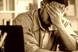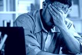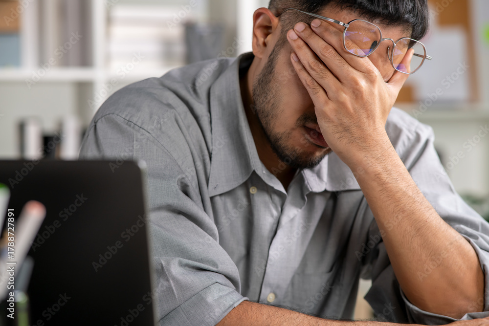 Businessman looking stressed from work, Businessman working at office feels overworked and burnout