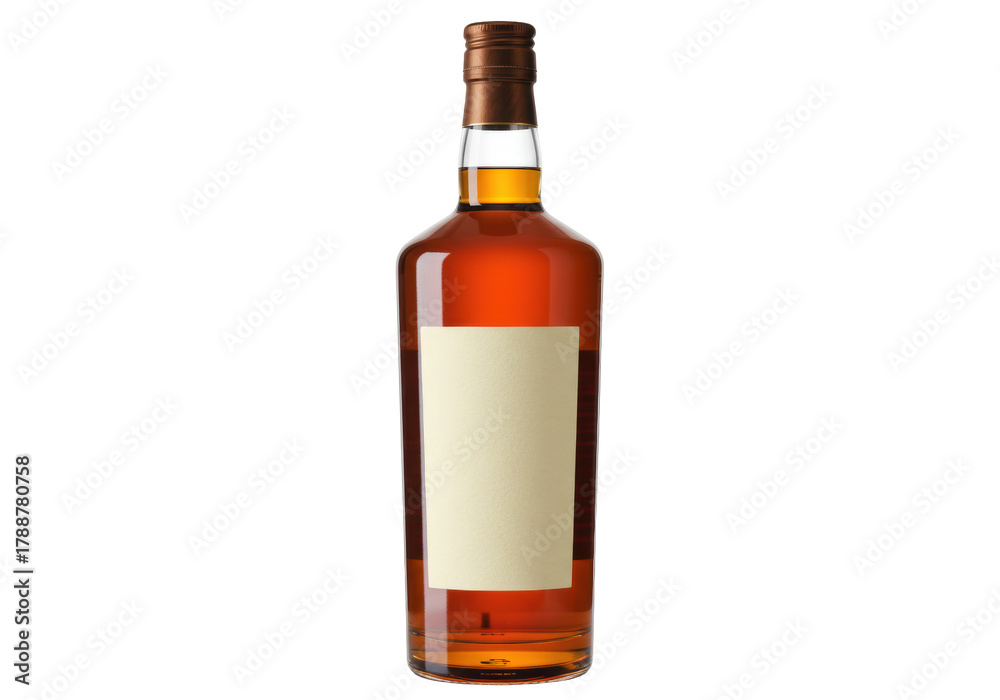 Whiskey bottle PNG illustration isolated on transparent background amber liquor in glass container with blank label