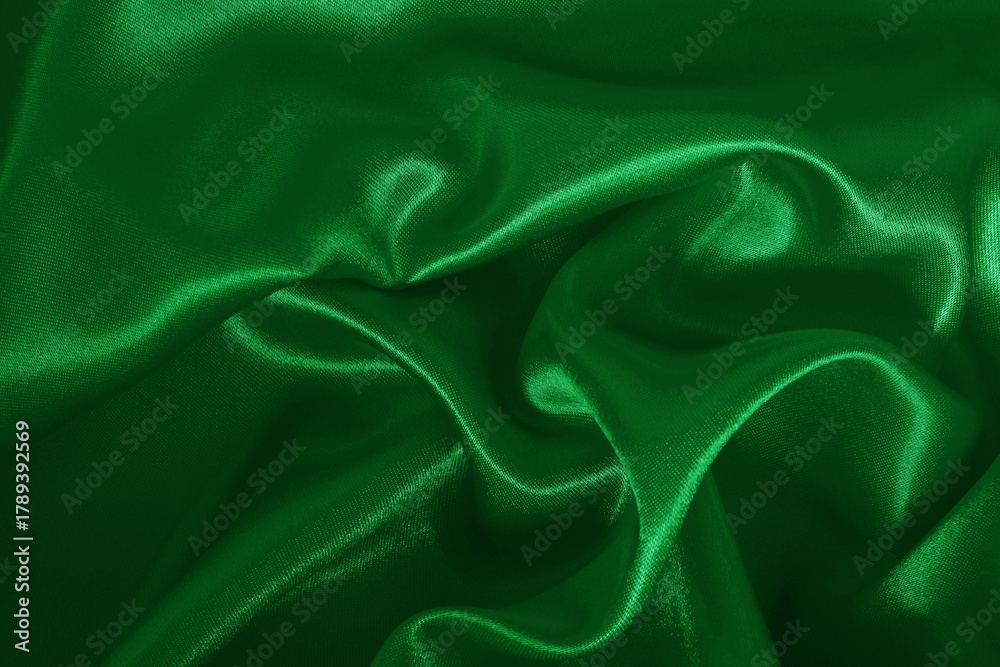 Green emerald fabric texture background, detail of silk or linen pattern.