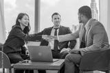 handshake diverse group teamwork meeting business professionals in suits shaking hands trust contract in an office. symbolizing agreement partnership success professional networking.