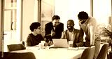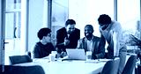 Excited, people and meeting with laptop in office for good news, promotion email and story funding. Team, discussion and pc for announcement, positive feedback and achievement for award nomination