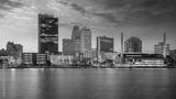 Toledo, Ohio, USA. Cityscape image of downtown Toledo, Ohio with reflection of the skyline in calm Maumee River at beautiful autumn sunset.