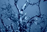 willow branches against blue sky with a beautiful bird