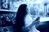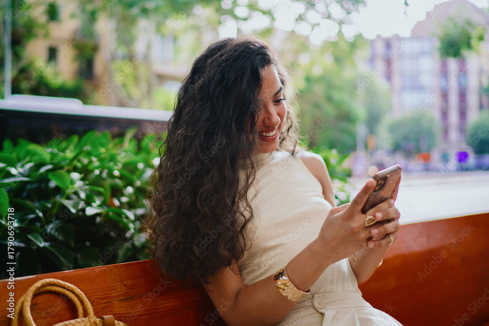 Laughing woman with smartphone expresses spontaneous joy, symbolizing emotional connection, tech-fueled happiness and human response to digital engagement.
