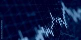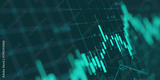 financial chart with uptrend line candlestick graph in stock market on blue color monitor background