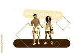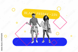 3d sketch poster trend collage image of two happy american girl dance together wear hipster look black friday consumerism sale