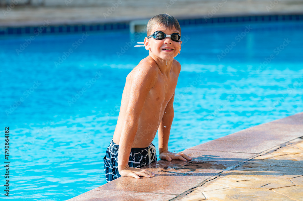 happy boy swimming in the pool
