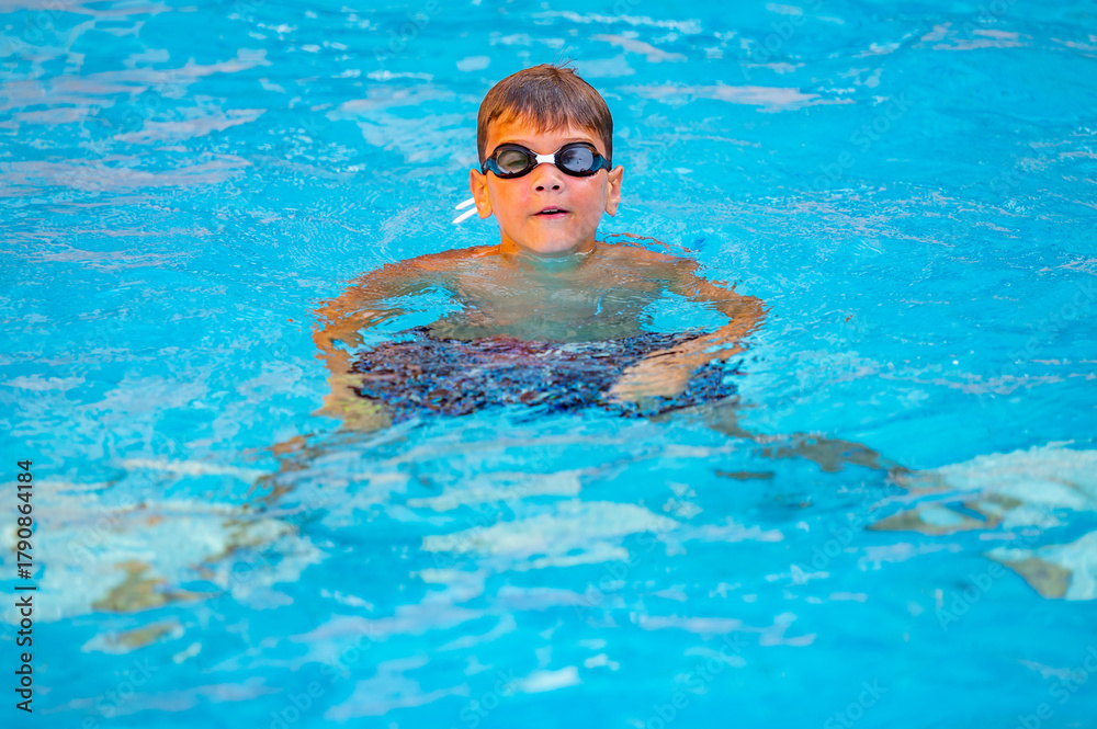 happy boy swimming in the pool