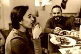 young latin woman and group of friends toasting with tequila shots for christmas dinner or thanksgiving in Mexico Latin America, hispanic people at holidays