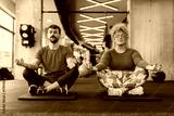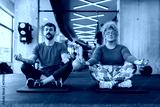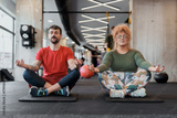 Bright Indoor Gym Lighting Relaxed Male and Female Meditating on Yoga Mats