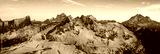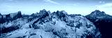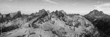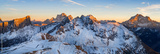 Panorama of the Dolomites mountains during autumn sunrise. Beautiful mountians of Alpi Dolomiti in Italy, South Tirol