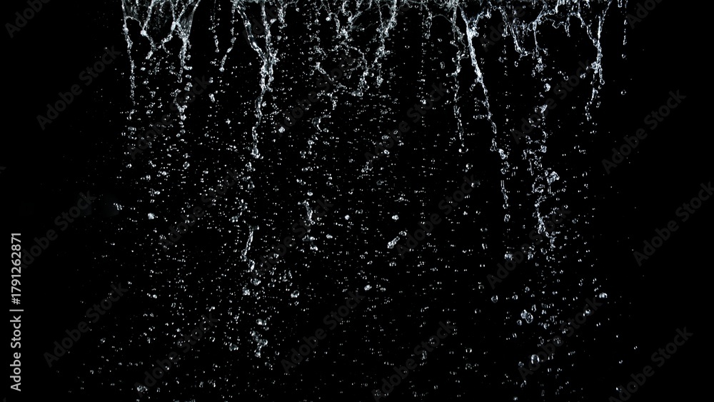 Freeze Motion Shot of Water Stream Isolated on Black Background