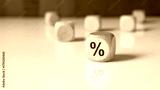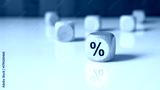 Wooden block with percent symbol on white table symbolizing interest rate and finance.