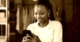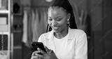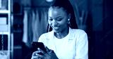 Phone, small business or black woman in office for shipping, fashion supply chain or online reviews. Logistics, mobile or happy worker with distribution update, typing or reading email for ecommerce
