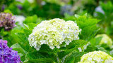 Hortensia (Hydrangea, bunga bokor, bunga masamba) flower. Hydrangea macrophylla is endemic to Japan, where it occurs in coastal habitats from Honshu southwards.