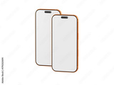 Two modern smartphones with blank screens, perfect for mockup, product presentation, or tech concept. Orange fr