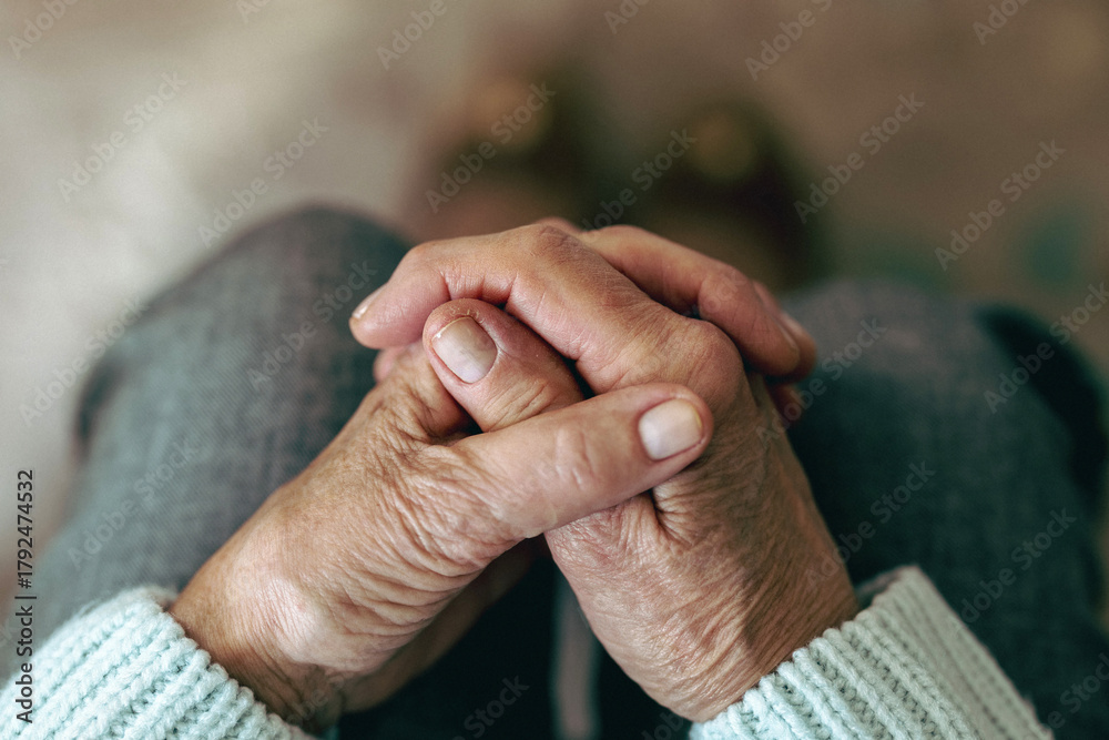Close-up of an elderly woman's hands at home