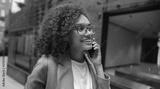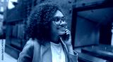 smiling professional woman talking on phone while holding folder near atrium, confident expression, smart