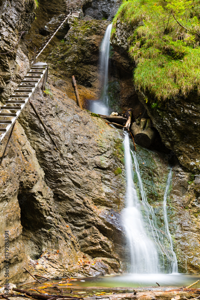 Sucha Bela gorge in Slovensky raj National park, Slovakia. Hikiing Path. Sucha Bela gorge is most popular and one of the most attractive trails. Picture shows Misove vodopady waterfall.