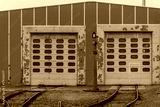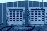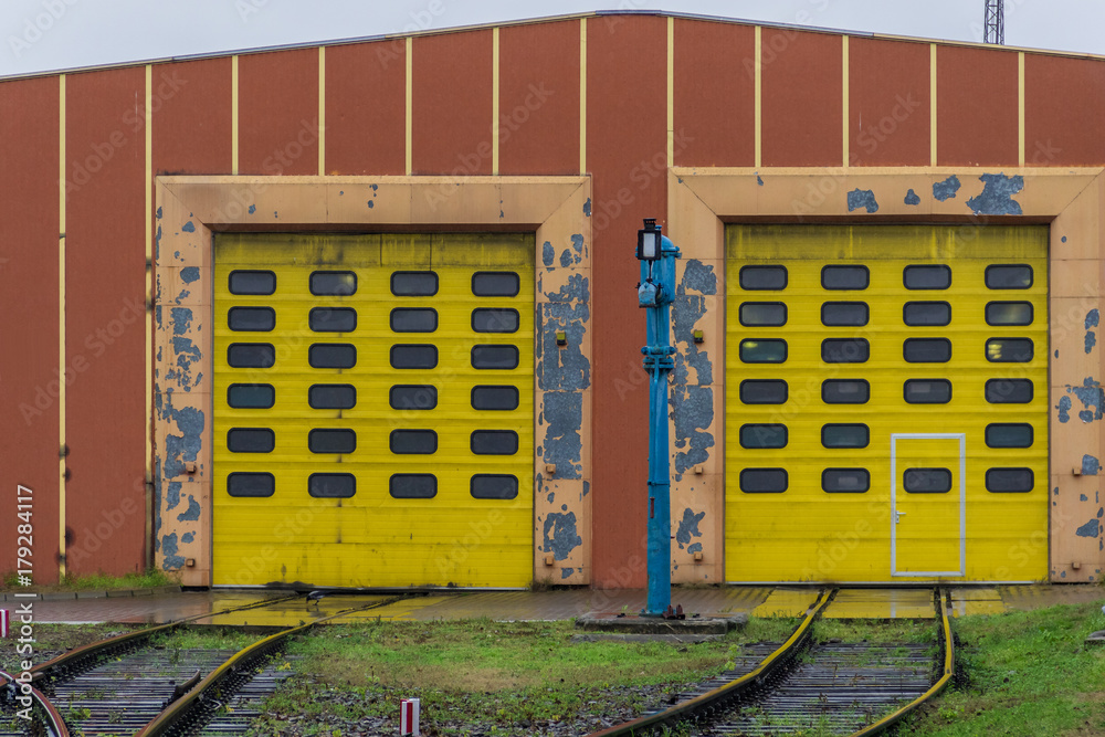 Hangar with the yellow color doors in the railway yard