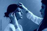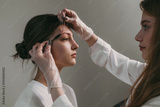 hydrating facial mask on caucasian woman cheeks with gentle massage and soothing clinic atmosphere