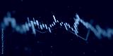 financial chart with uptrend line candlestick graph in stock market on blue color monitor background