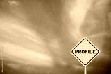 Yellow transportation sign with word profie on violet color sky background