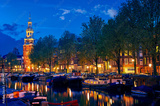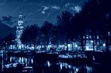 Evening town Amsterdam in Netherlands on bank river canal Amstel