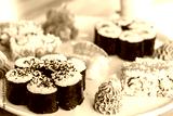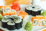 The best sushi rolls, Japanese cuisine. Different delicious kinds of sushi rolls.
