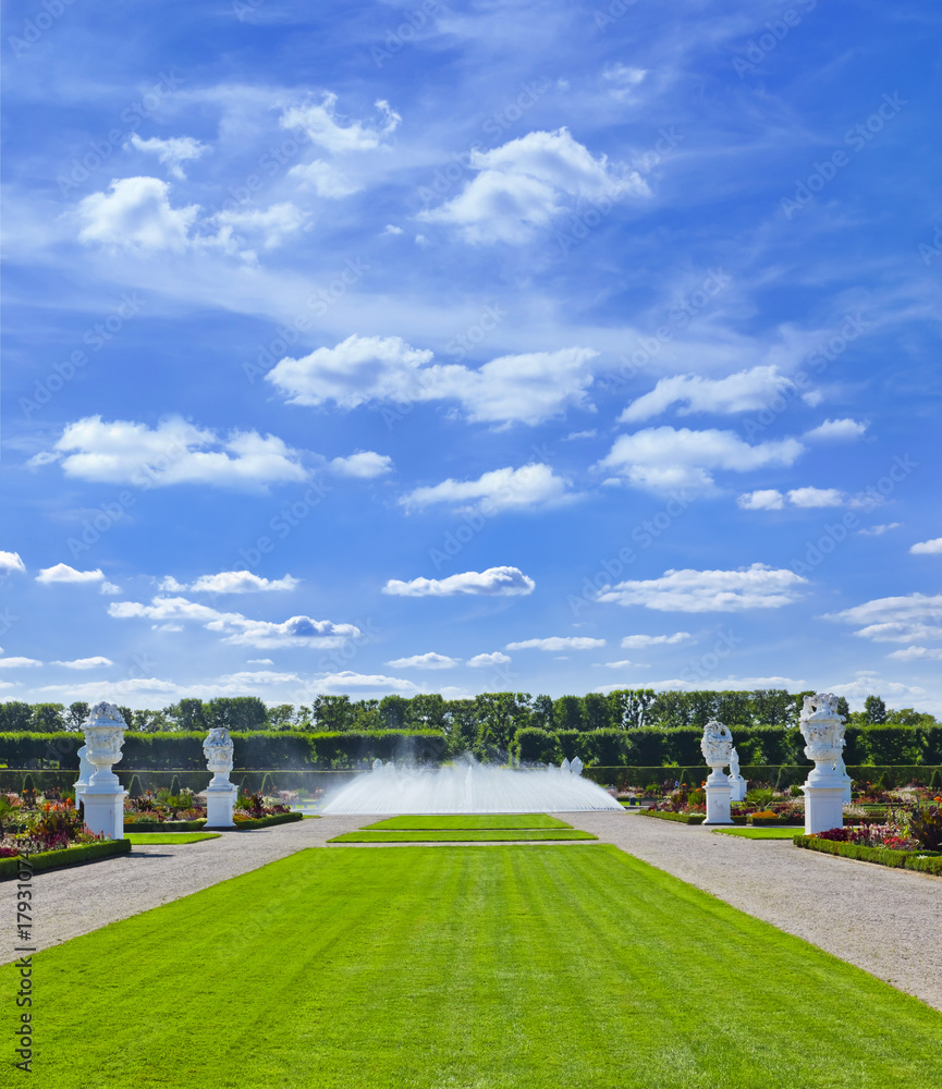 Herrenhäuser Gärten mit Glockenfontäne und antike Statuen