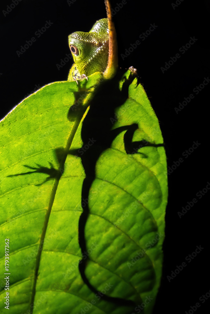 A Juvenile Blue-eyed Anglehead Lizard, also known as an Orange-ringed Anglehead Lizard or a Tropical Forest Dragon (Gonocephalus liogaster) in Kubah National Park, Kuching, Sarawak, Borneo, Malaysia