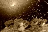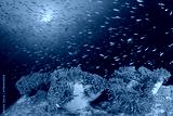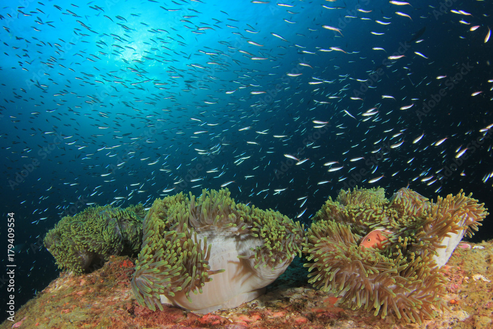Anemones on coral reef. Clownfish anemonefish tropical fish