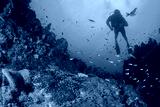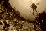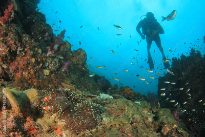 Scuba diving on coral reef