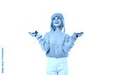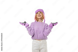 Person in pink sweater enjoys winter fun, isolated, PNG
