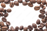 Roasted Coffee Beans background frame isolated on white background with copy space for text. Close up image