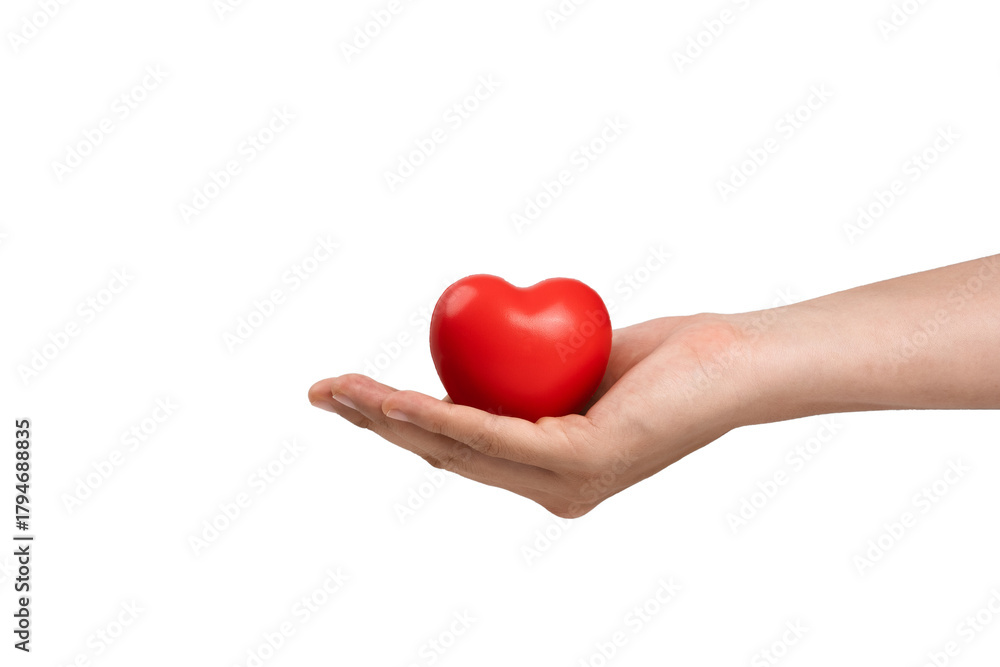 Hand holding red heart symbolizing love, health care and healthy, heart health insurance, charity donation,
