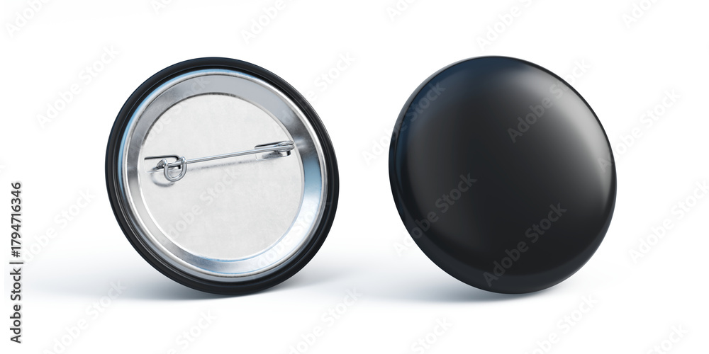 Black badge pin brooch mockup. White round badge on metal pin