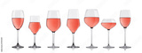 Glasses of rose pink wine on white with reflection