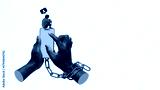 Conceptual composition of chained hands using smartphone with tiny lonely figure above. Concept of addiction, isolation, digital dependency, and struggle with tech control.