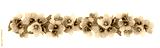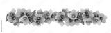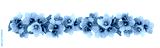 Blue violet flowers and green leaves in a line arrangements isolated on white or transparent background