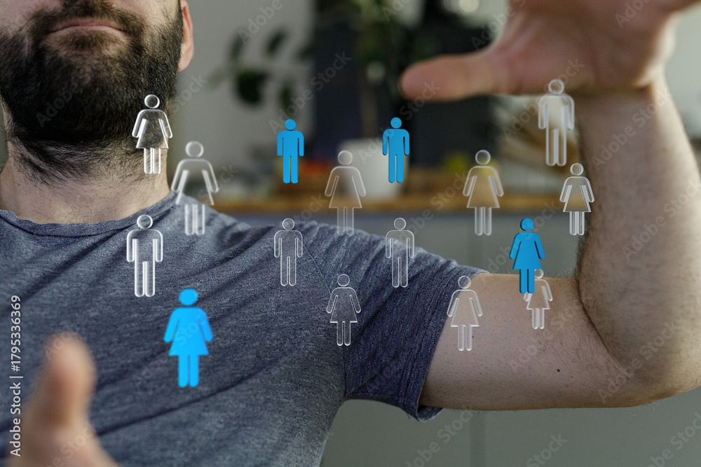Concept of social network, people interacting with each other, teamwork, connection, online, technology and int
